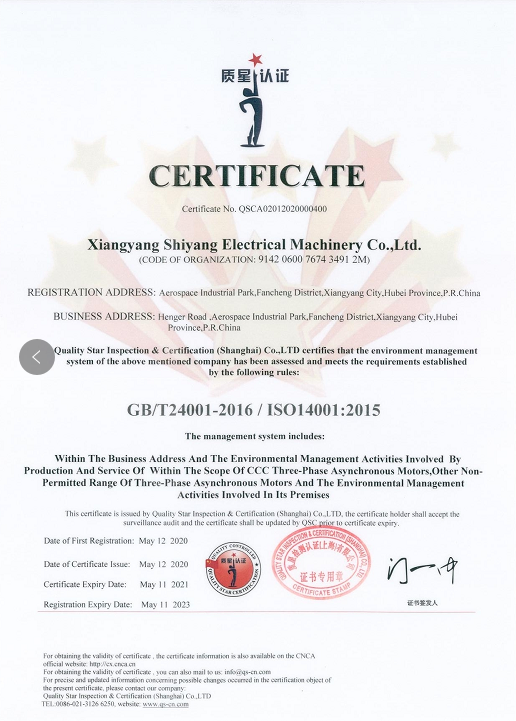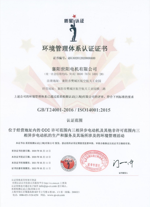 環境管理體系認證證書